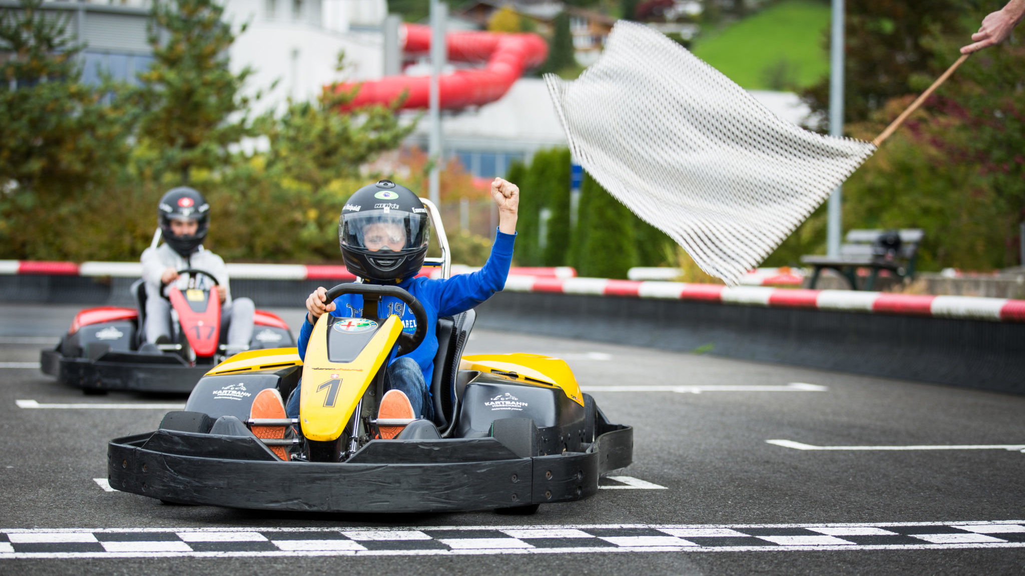 Geniessen Sie einen rasanten Nachmittag beim Gokart-Fahren mit Familie und Freunden. Oder buchen Sie die ganze Outdoor Kartbahn exklusiv und veranstalten Sie Ihr eigenes Rennen.