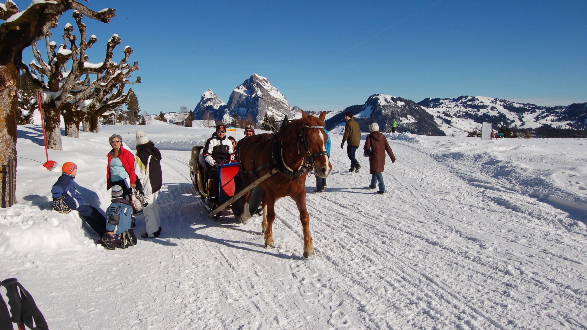 Sie fahren mit der Schlittenkutsche gemächlich rund um das kleine Bergdorf und geniessen dabei gemütlich den Blick auf die Zentralschweizer Voralpen-Welt. Dieser Winterromantik können sich auch hartgesottene Realisten nicht verschliessen.