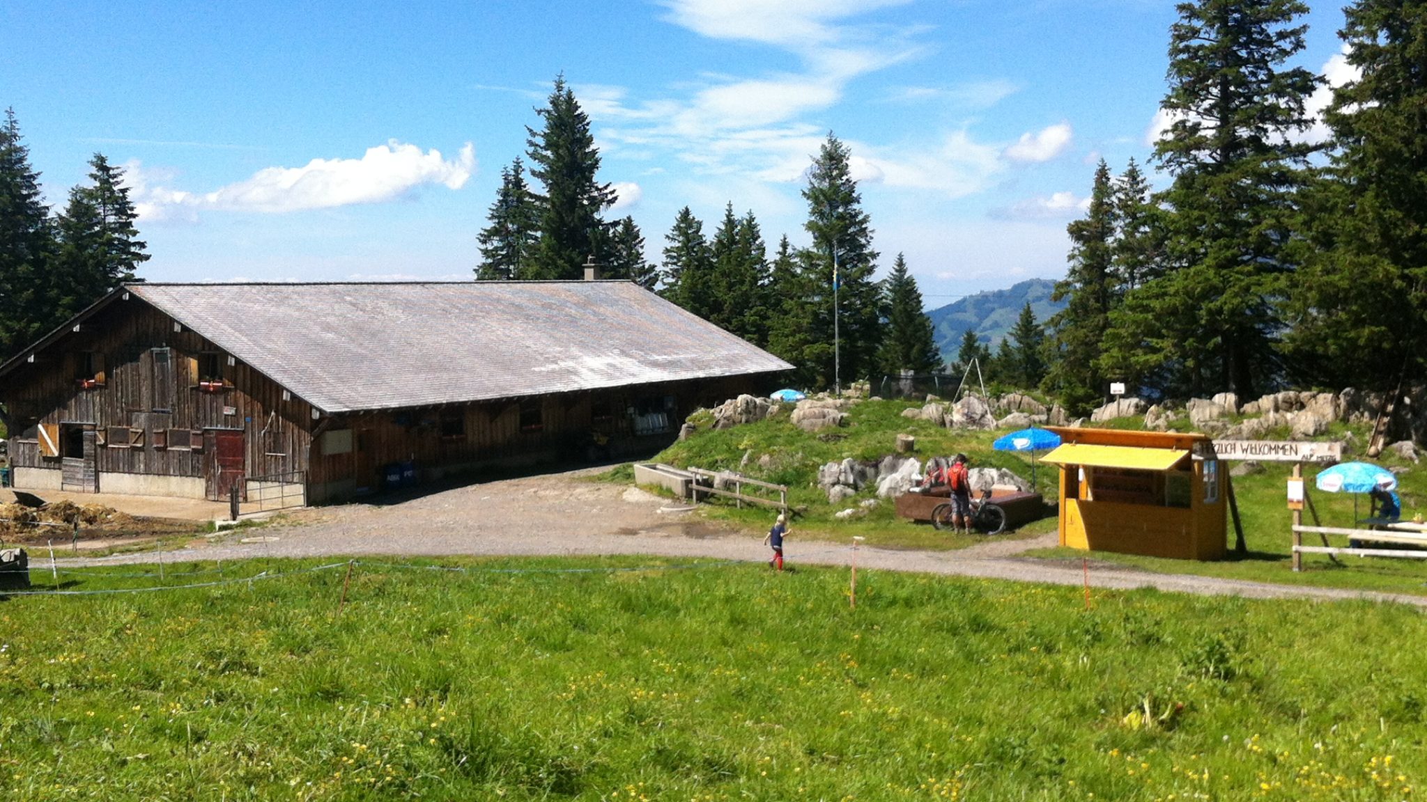 Dieser schöne Flecken Erde ist auf einem Plateau idyllisch am Waldrand gelegen. Für Wanderer und Familien stellt die Familie Langenegger einen Grill und einige Picknickplätze zur Verfügung. Für das leibliche Wohl sorgt der Verkaufsstand mit Joghurt, Käse, Getränken, Glace und weiteren Spezialitäten. Die kleinen Gäste entdecken die Tannzapfenrutsche, das Trampolin, die Rutschbahn, den Sandkasten und die Natur.